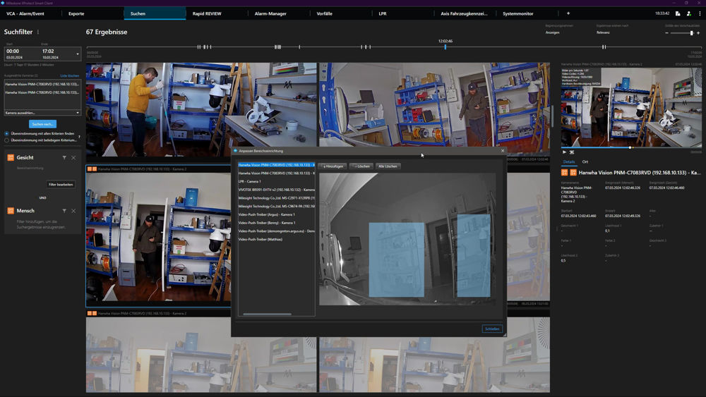 Das Hanwha Vision Plugin für Milestone kann eine forensische Suche in ausgewählten Bereichen durchführen.