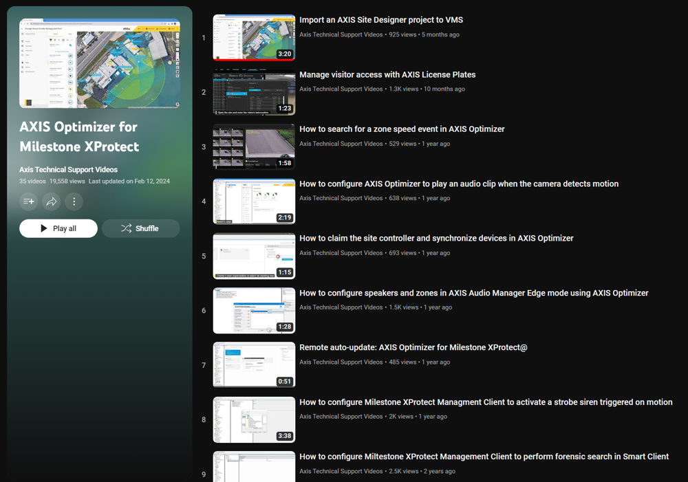 Manche Funktionen des Axis Optimizers (wie Dewarping und Web View) funktionieren aber auch ohne Axis Kameras. Unter der Ansicht "Axis Videos" finden Sie noch nützliche Videos von Axis Technical Support.