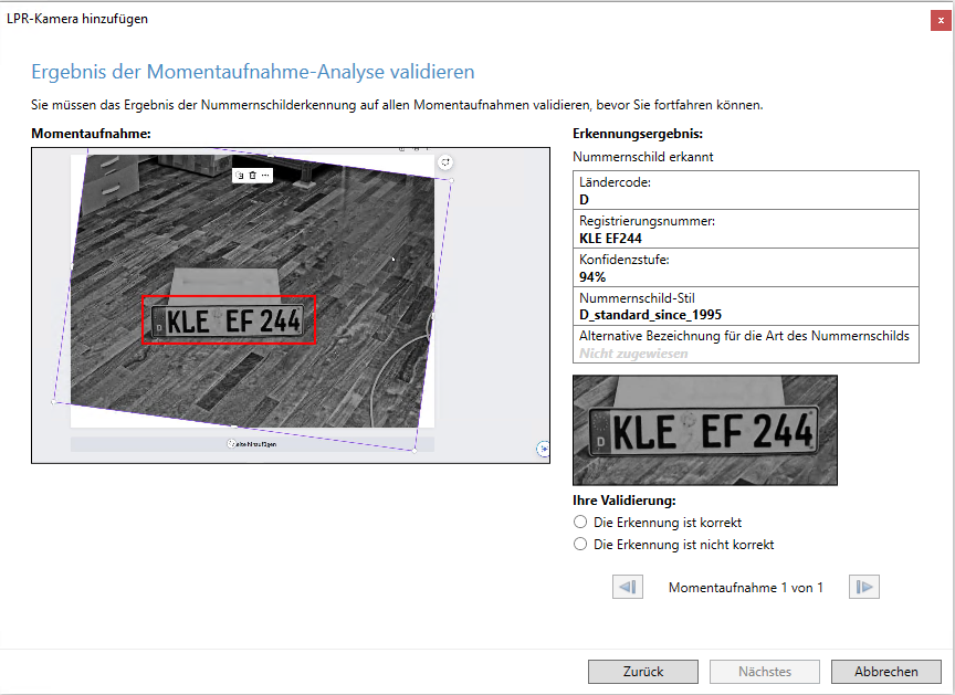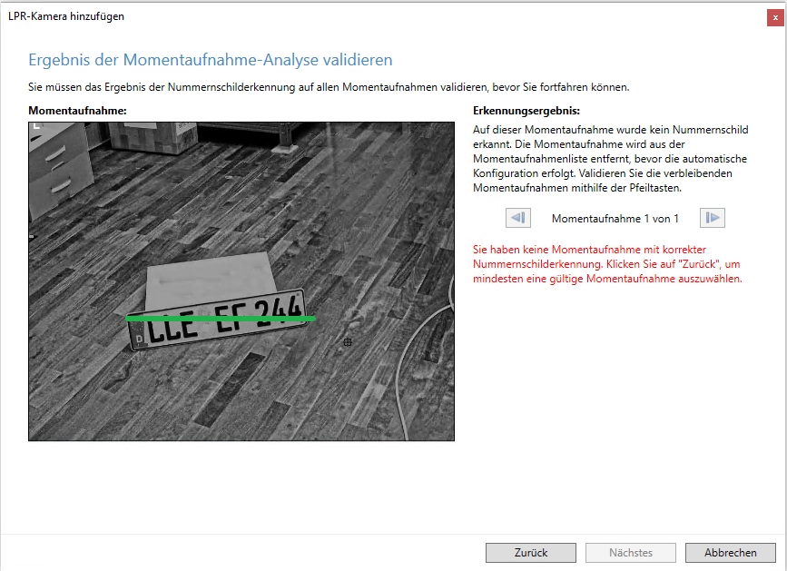 - Der Bereich sollte nur den Bereich des Bildes abdecken, in dem das Nummernschild sichtbar ist, wenn das Fahrzeug das Bild durchfährt